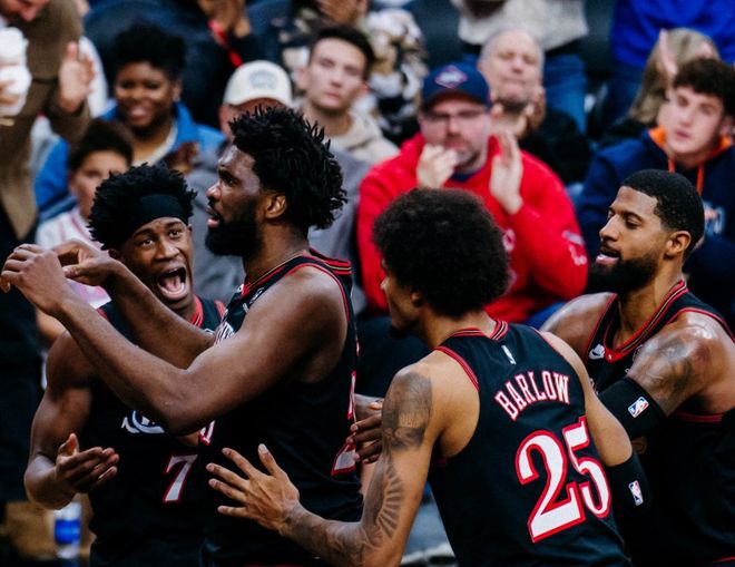 包括小卡、老詹、库里、字母哥这些NBA超巨,本赛季都曾被伤病困扰。但有一位球星,在经历了无数次伤病后,回归表现还不错,就是恩比德。恩比德本赛季出战的14场比赛,球队战绩7胜7负(他缺阵的比赛,球队10胜7负),场均22.6分6.7篮板3.1助攻,两项命中率43%+25%,这个效率值,其实已经是中锋行列中的垫底水准。但是在过去5场比赛中,恩比德场均贡献30.6分8.8篮板3.4助攻。比如对阵步行者砍下39分9篮板,对阵公牛空砍31分5篮板,对阵灰熊砍下34分10篮板8助攻(28中11)。